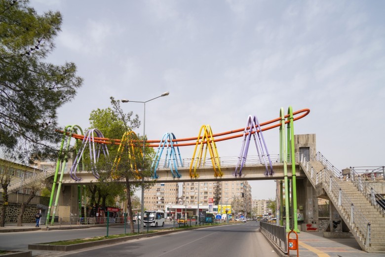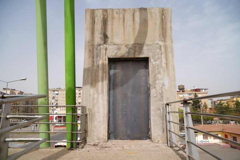 Diyarbakır Büyükşehir Belediyesi, Bağlar ilçesi Sunay Caddesi üzerinde bulunan üst geçitte asansör boşluğunda herhangi bir kazanın olmaması için kapıların yerlerini çelik sacla kapattı.