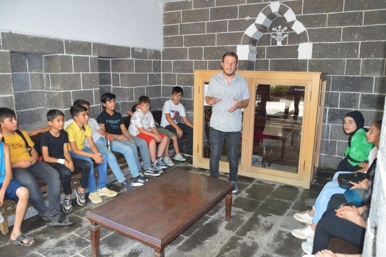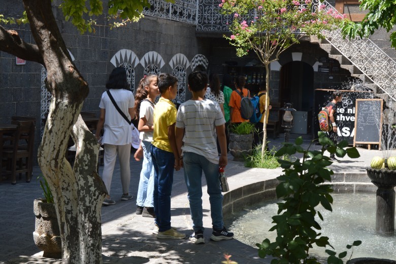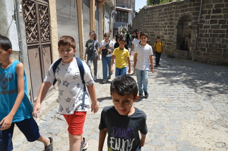 Etkinliklere katılan çocuklar, Diyarbakır’daki tarihi ve turistik mekanlarıziyaret ederek merek ettikleri soruları sorma fırsatı buluyor.