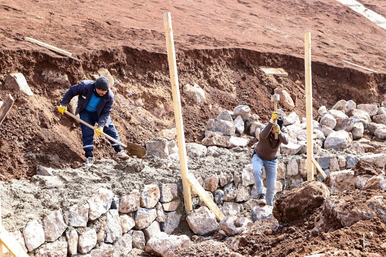 154 bin 338 çalının dikileceği ve mevsimlik çiçeklerle süslenecek alanda sulama sisteminde kullanılmak için sondaj çalışması yapılarak su kaynağı elde edildi.
